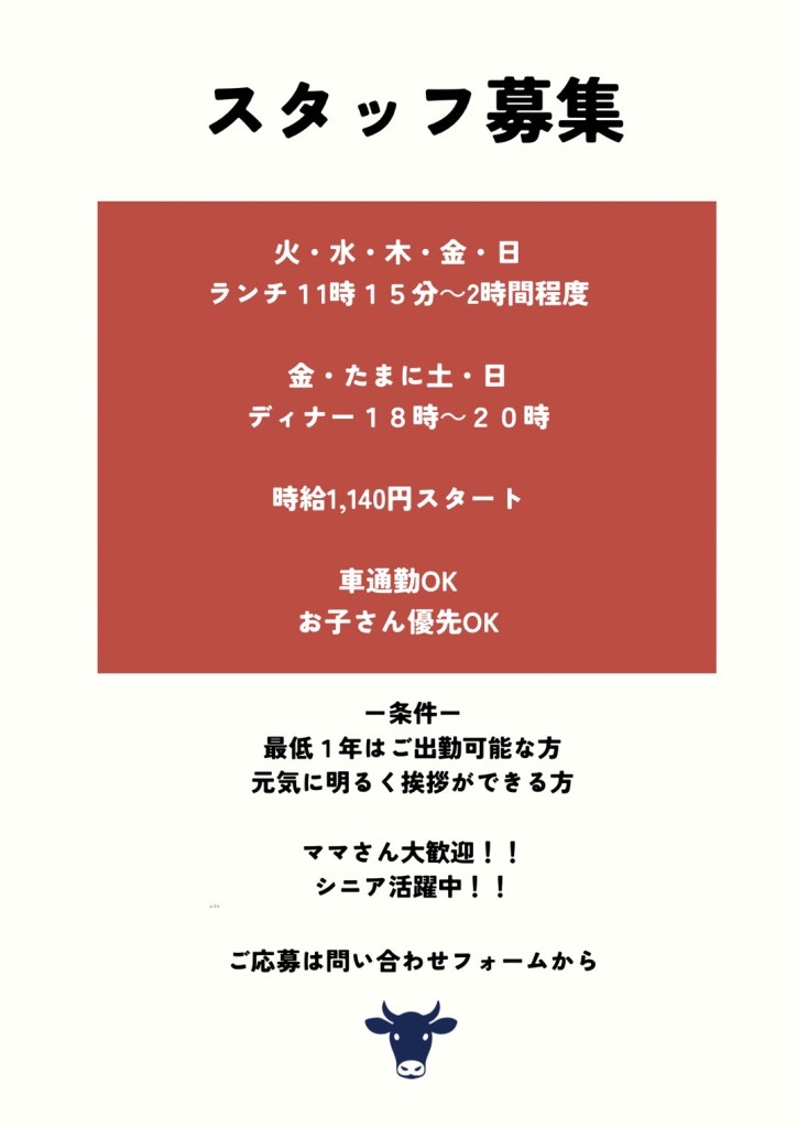 スタッフ募集 投稿日: 2026年4月17日 投稿者 kurobeko 元気に一緒に働いてくれる仲間募集中。 ご応募、お待ちしております。 評価:共有:Tweet 友達にメールでリンクを送信 (新しいウィンドウで開きます) メールアドレス 印刷 (新しいウィンドウで開きます) 印刷 いいね 読み込み中…